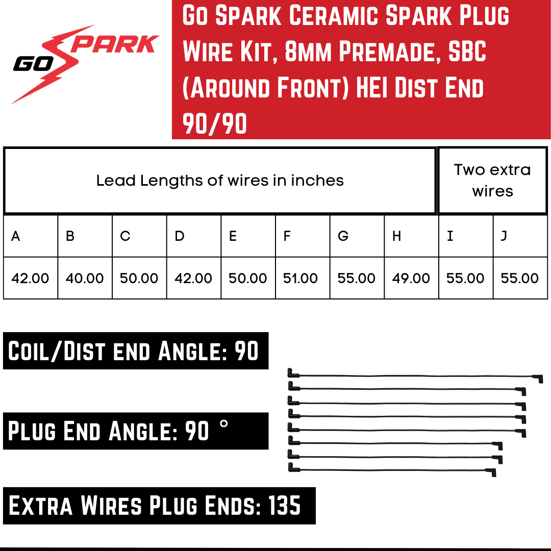 Go Spark Ceramic Spark Plug Wire Kit, 8mm Premade, SBC (Around Front) HEI Dist End 90/90