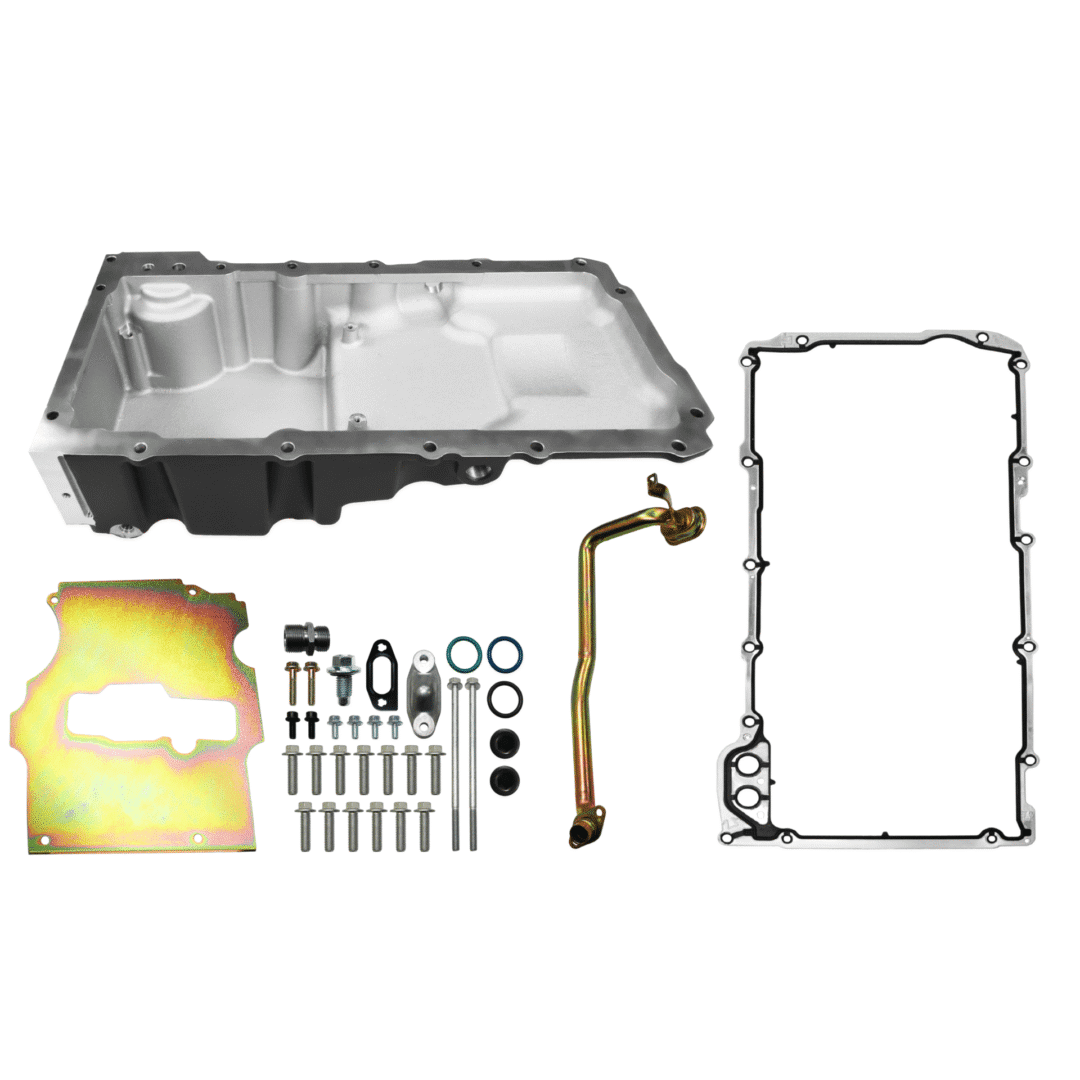 - Designed to use a GM “F-body” windage tray, GM P/N 12558253 with required modification to the windage tray to provide clearance to the pick-up tube. A full-length windage tray may be used if the tray is shortened and also cut to provide clearance to the pick-up tube.