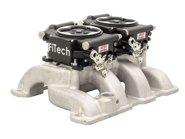Dual Quad! EFI! Nothing says Muscle like 2 big 4 BBL’s on a V8. FiTech EFI has made it simple with their Go EFI 2×4 625HP self-tuning dual quad normally aspirated system with a matte black finish. This kit is a bolt on for the most popular manifolds including the Edelbrock line of dual quad manifolds without any adapters! They fit and look like they belong there because they were designed to fit from the start. Our normally aspirated kits are good thru 625hp. One throttle body handles all of the brains while the second holds 4 additional injectors. These can also be used in cross ram and tunnel ram configurations. No boost with these, please! For Boosted and High HP normally aspirated applications please see our Go EFI 2×4 POWER ADDER (Part #30064).