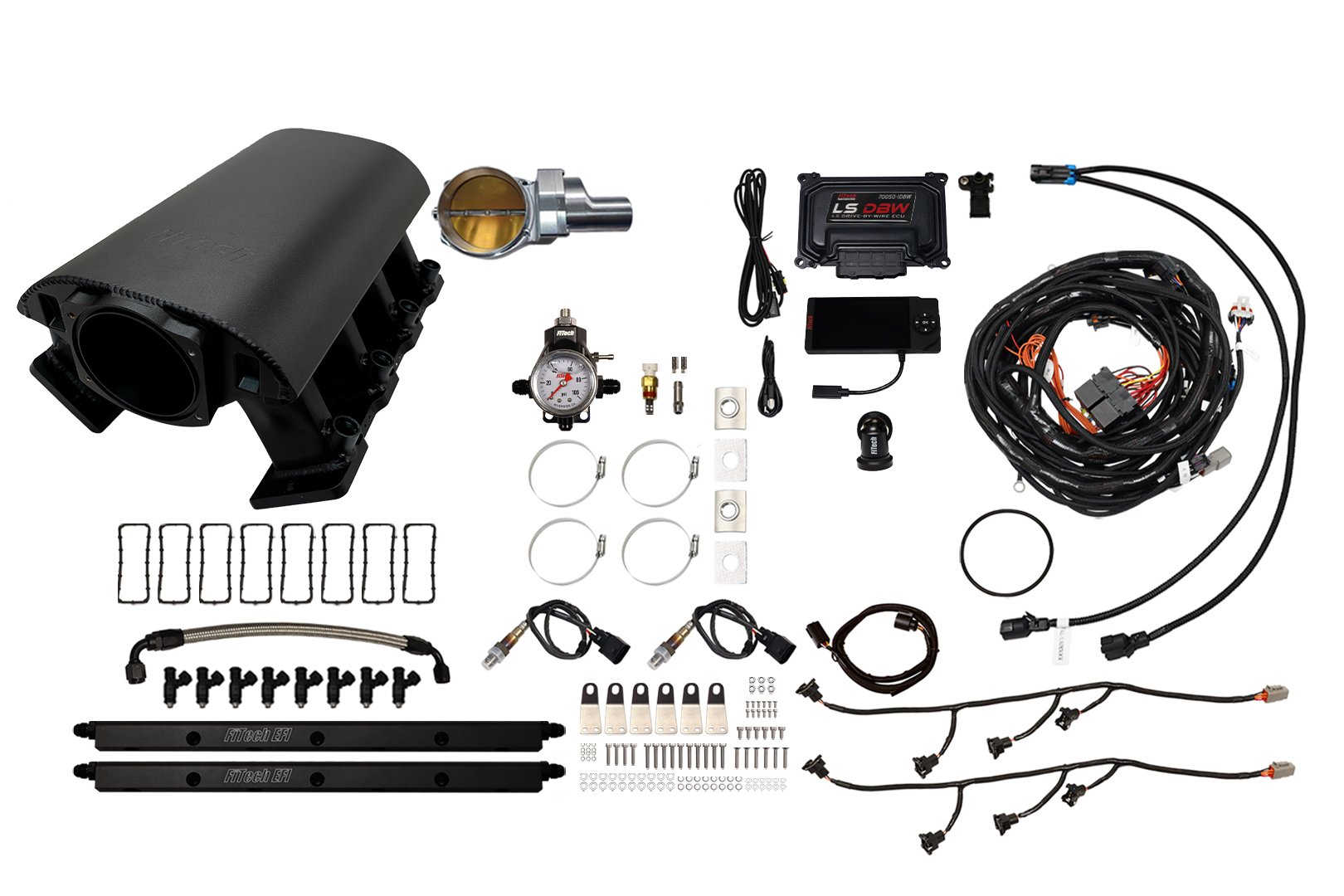Ultimate Rebel Black Tall LS1 1000 HP EFI System Tall Cathedral Intake DBW Brilliant Billet 102mm TB Without Trans Control No Pedal
