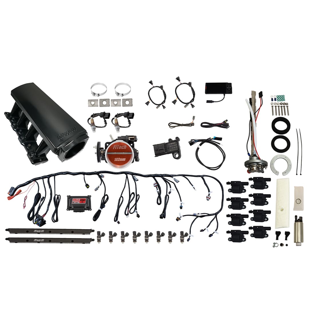 Ultimate LS/ 750 HP/ EFI System/ Long Runner Cathedral Intake/ Go Fuel In-Tank Regulated Pump 340 LPH/ Go Spark LS3 Style Coil With LED 8 Pack/ Returnless/ Master Kit