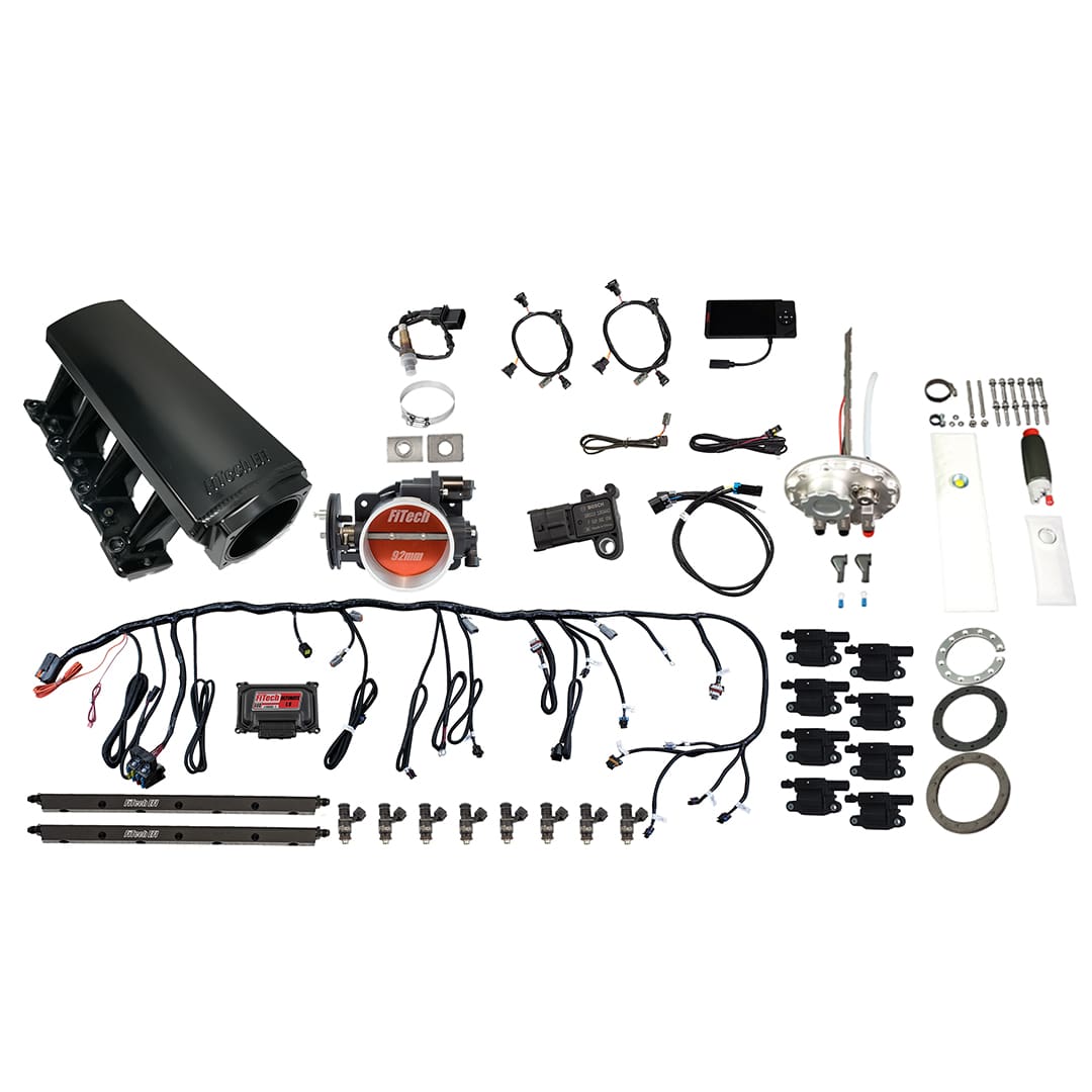 Ultimate LS 500 HP EFI System With Long Runner Cathedral Intake, Go Fuel In-Tank 340 LPH Fuel Pump Returnless Module With 2 Inch Fill & Go Spark LS3 Style Coil With LED 8 Pack Master Kit